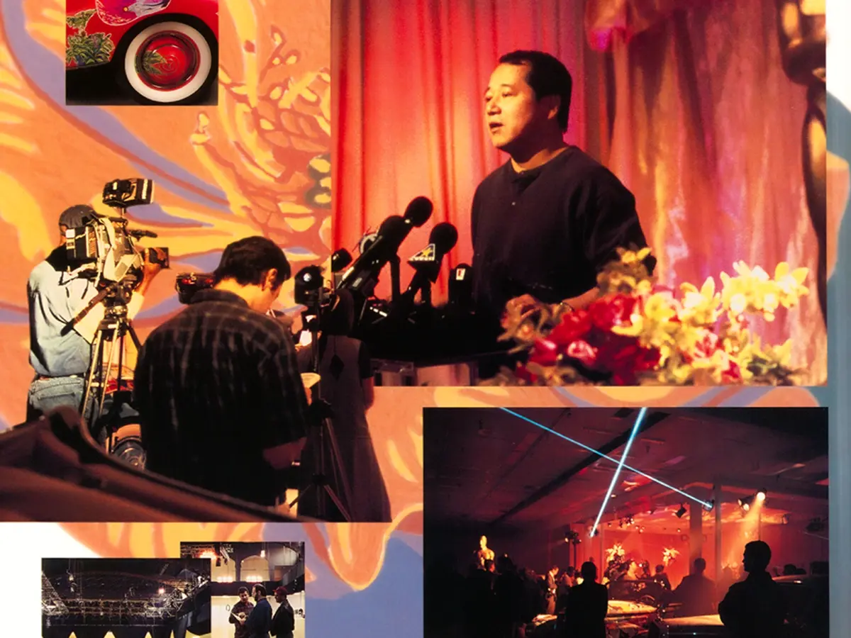 1997年に開催されたアカデミー賞の公式祝賀会「Governors Ball」において、日本人アーティストであるヒロ・ヤマガタの作品シリーズ『Earthly Paradise(アースリー・パラダイス)』が会場演出のテーマとして採用されました。会場では、ヒロ・ヤマガタの作品イメージが巨大な天井スクリーンに投影され、色彩と光による空間演出によって、会場全体が彼の作品世界で彩られました。さらに、ヒロ・ヤマガタがプログラムしたレーザーによる光の演出が加えられ、会場は幻想的で華やかな空間へと変貌しました。