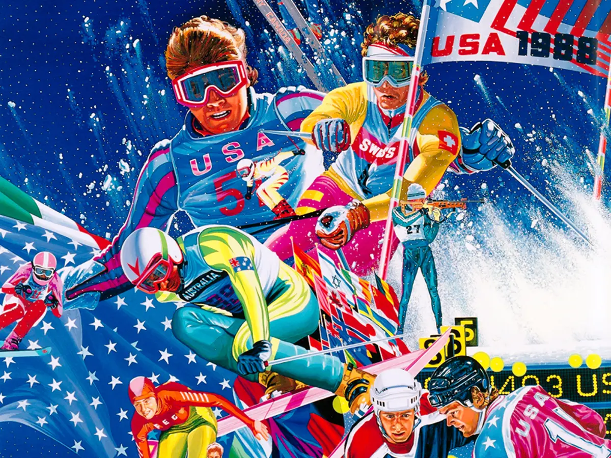 1980年代、ヒロ・ヤマガタはアメリカを拠点に国際的な活動を展開していました。ロサンゼルス五輪の時代背景の中で、スポーツと都市祝祭をテーマにした作品を制作し、オリンピックをテーマにした作品シリーズが始まった時期とされています。